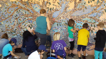 These mosaics add a splash of color and beauty to our campus and brighten up the days of all who come upon them.  Students take pride in showing their parents exactly what part of the mosaic they worked on, and often pose for pictures in front of "their" mosaic.