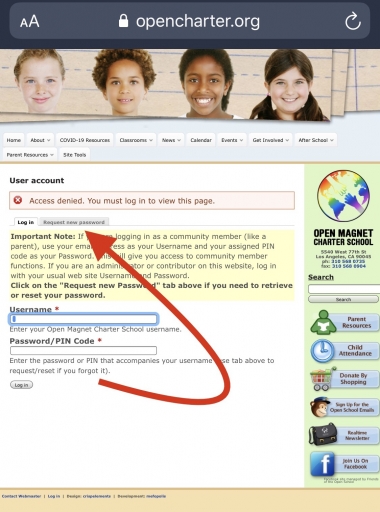 Special Note: If you edit website content and are also a parent, you will need to log out of your website maintainer session before you can log in with your parent email address as described above.